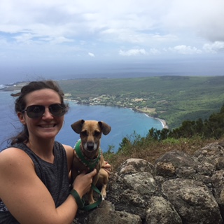 Meg currently lives in Honolulu, Hawaii and works as a yoga educator and instructor. She moved to Hawaii about three years ago with her boyfriend John who is in the Navy. While John was away on long naval trips, Meg began fostering dogs for the local animal shelter.