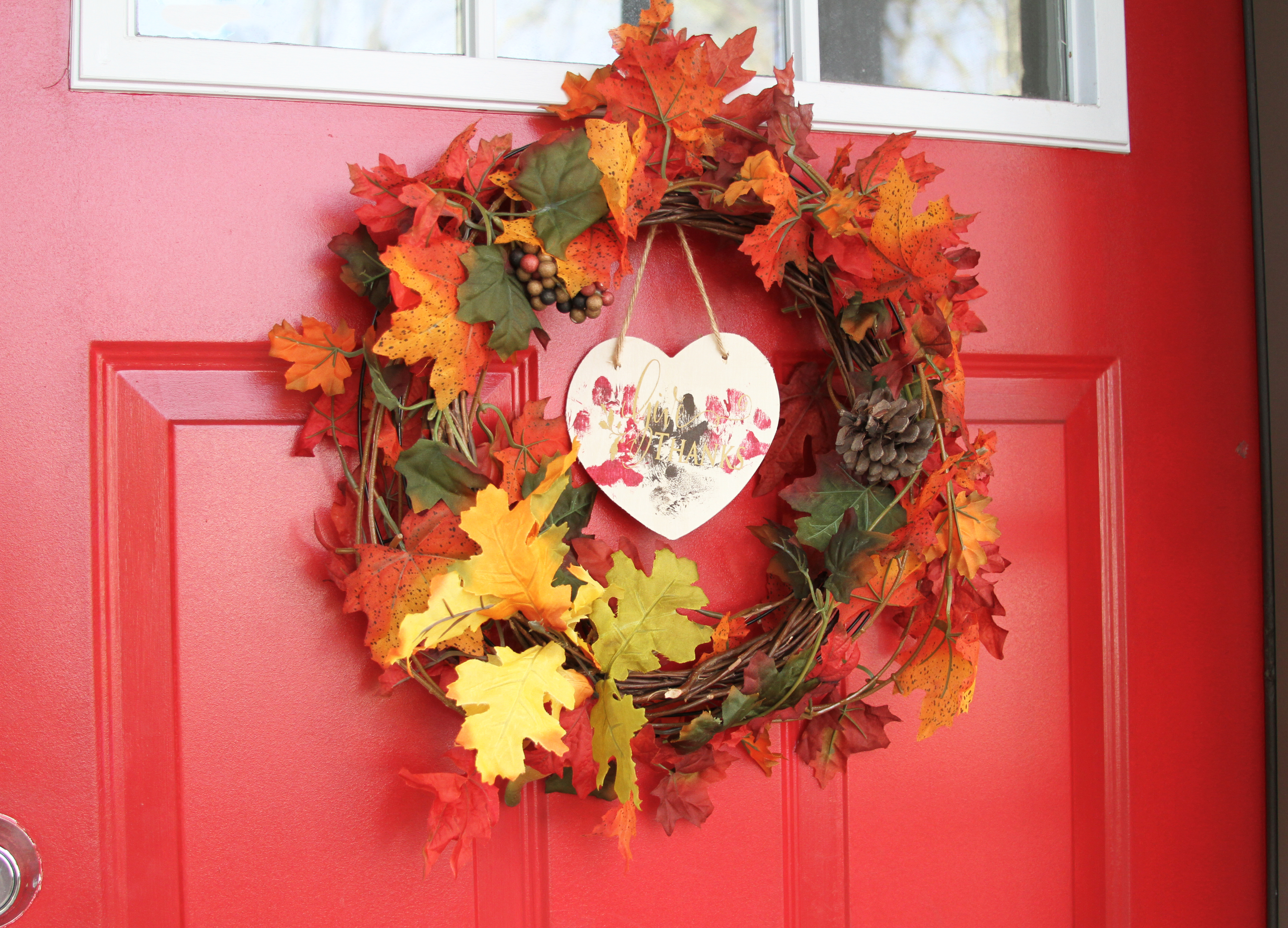 4. After an hour, the paint should be dry. You can either take a paint pen or vinyl lettering to write something like ‘Give Thanks’ or ‘Thankful’ across the heart.