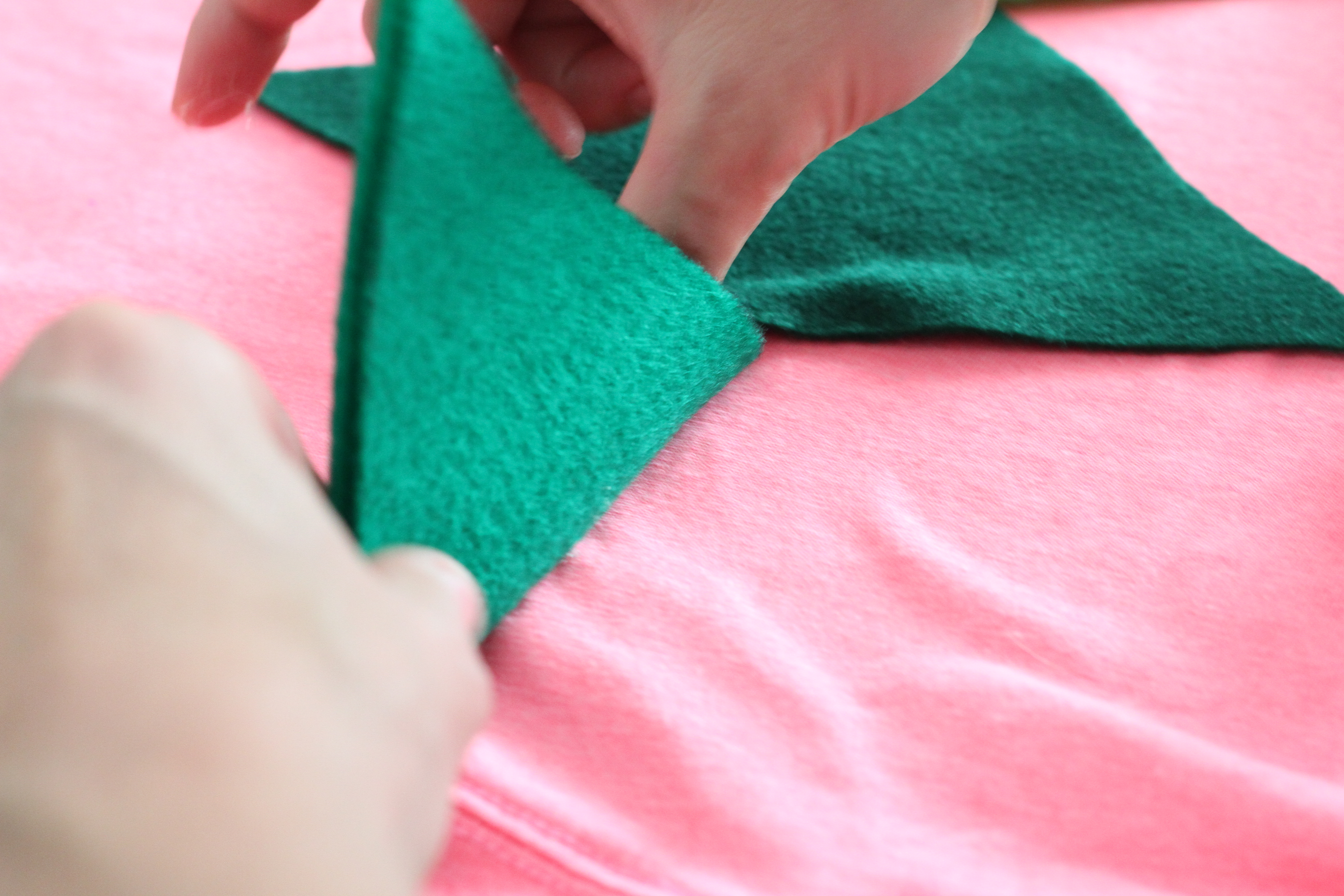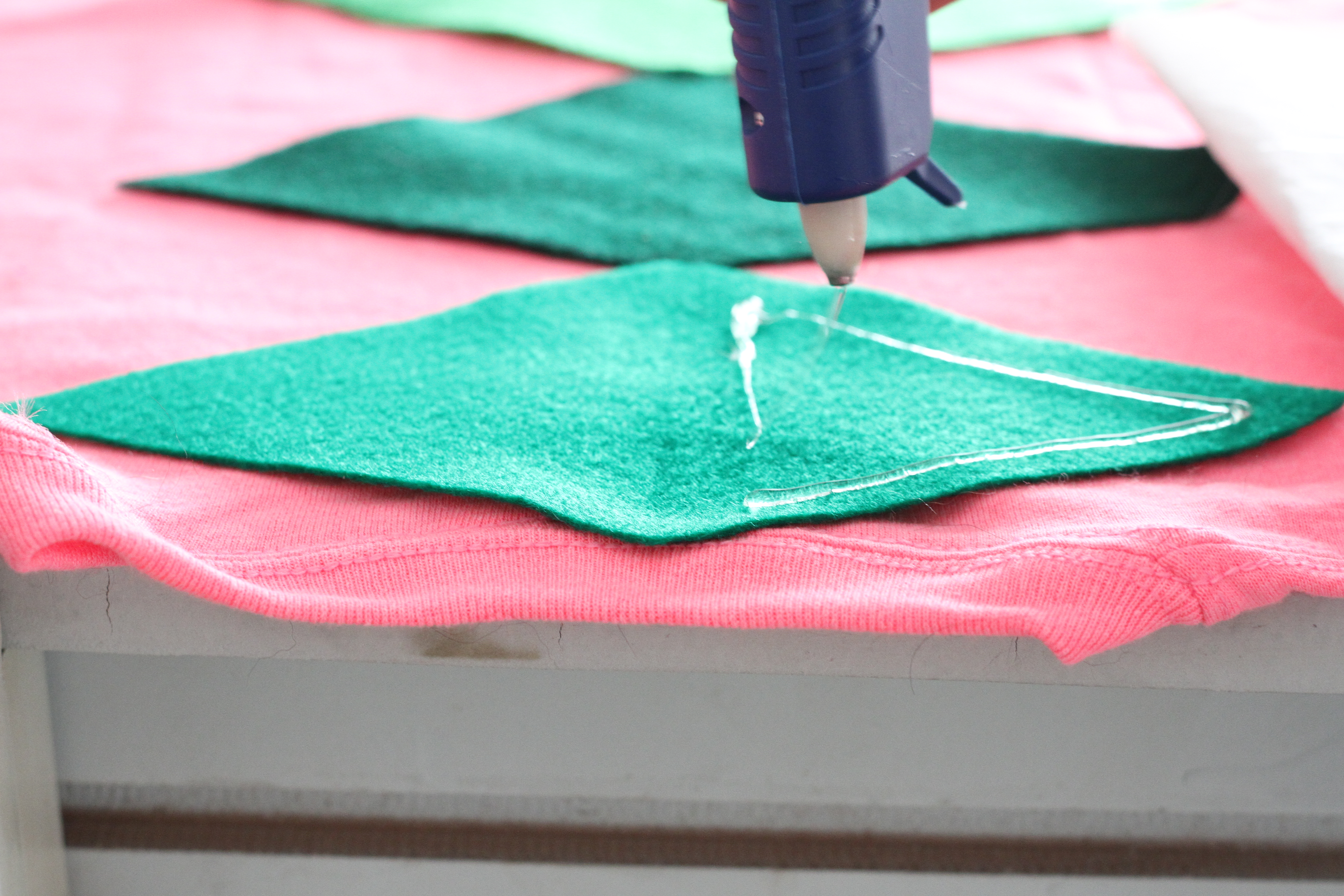 8.Take each of the felt spikes one by one and glue them at the underside of the fold to the shirt
