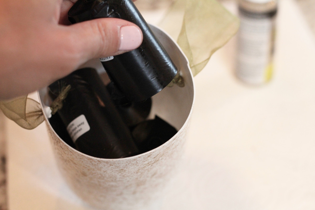8. Insert poop bag rolls and hang in a desired location!