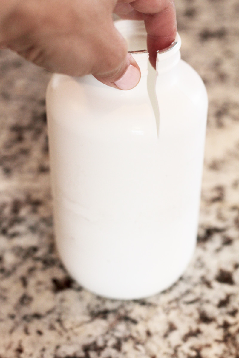 1. Peel or strip off any labels from the container you chose. I used an empty 12oz container that held one of Mylah’s powdered medicine