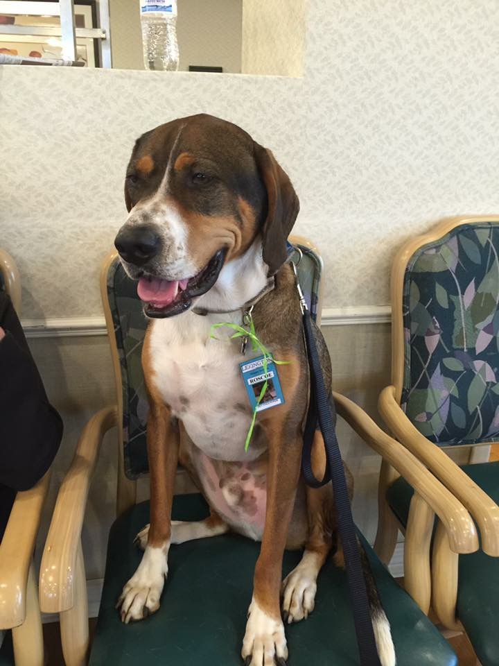 Roscoe required some extra training because he was a big puppy who loved to get into everything. “People stop us on the street to admire his looks. We always tell him it’s a good thing he is so good looking and charming because you can’t help but find yourself in mischief all of the time,” said Danielle. Roscoe has personality and energy to spare. He runs 2 ½ miles every morning, an evening walk, laps in the yard, AND daycare once a week. Roscoe P. is loveable, goofy and has a sixth sense for people which made him perfect for therapy dog work. He’s also now certified like his sister Lea Mia and volunteers with Danielle.