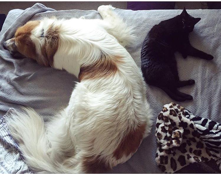 Sarah Saber lives in Fairfax, VA with her 2.5-year-old rescued dog Bane and 12-year-old black Domestic Shorthair rescued cat, Bama. Bane is a Saint Bernard and Great Pyrenees mix who Sarah fostered from Dogs XL Rescue after they found him emaciated and living on a farm. Bane was only 68lbs when Sarah drove two hours to aid in his rescue. She knew immediately upon picking him up that Bane was her dog. Now Bane weighs 135lbs and is best friends with Bama, but it took them awhile to work through Bane’s struggles as the result of where he came from.
