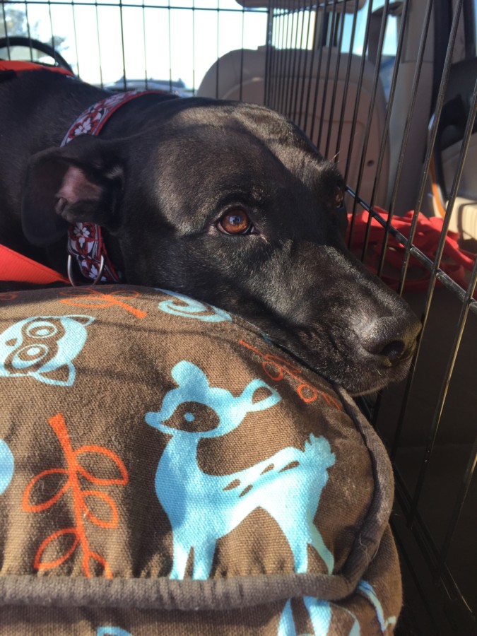 Roxie needed to be transported to her rescue group in Indiana, and because I would do almost anything not to let Roxie go into animal control, I happily volunteered. Roxie stayed with a temporary foster for a week before we began our road trip to Indiana. I brought Izzy with me for the drive. She and Roxie got along great!
