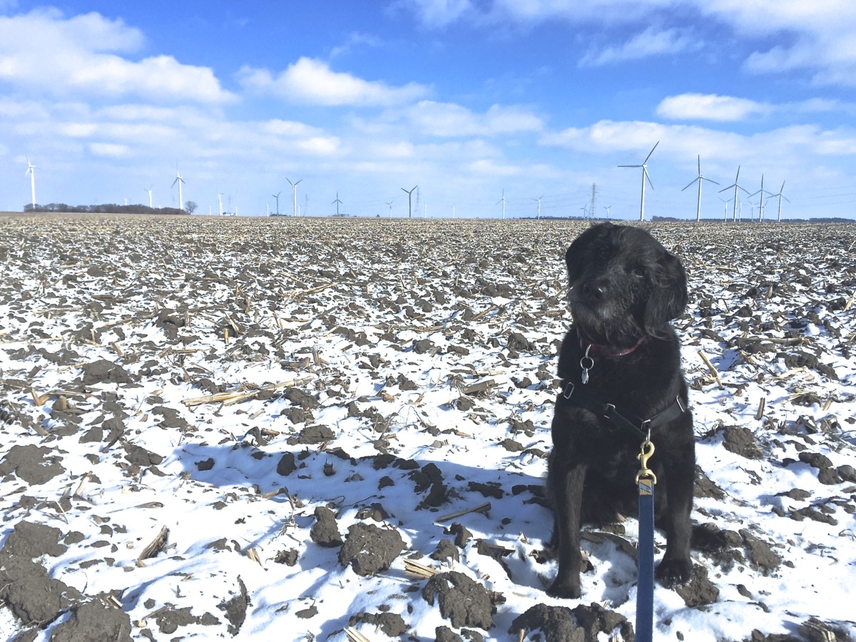 After we dropped Roxie off with the rescue group, Izzy and I stopped to take a walk in a frozen over corn field. It was so cold that day but it was good to stretch out legs in between the drive. The total time we drove was about 6.5 hours.