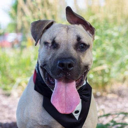 About Walter: Are you looking for a fun-loving, playful but very affectionate 75-pound lap dog? Walter is a one-year-old, tan Mastiff mix with some handsome black highlights around his face. Walter was rescued from Chicago Animal Care & Control. Many people passed his cage because his eye was in bad shape. He had glaucoma in one eye and cataracts in the other. The glaucoma eye was beyond saving and extremely painful so it’s been removed, and SO many really awesome people rallied behind him to raise money to have cataract surgery so Walter can see with one eye!