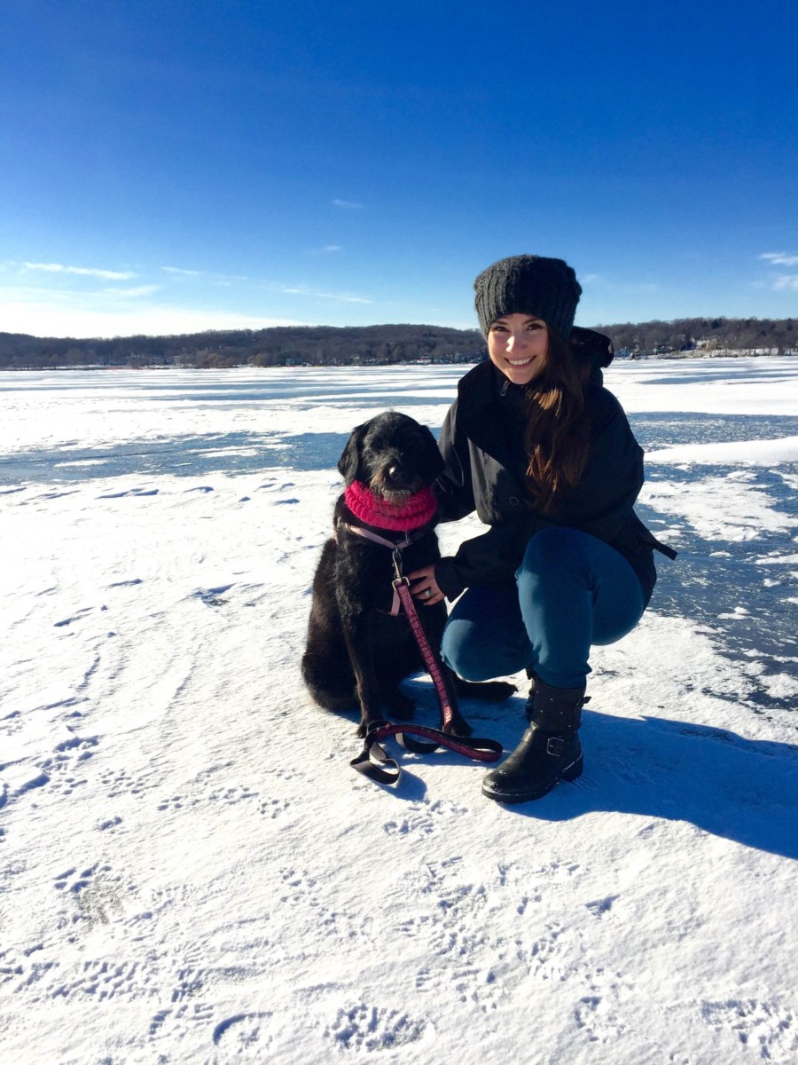 Let’s start with our adventure to frozen Lake Geneva, WI in February 2016. This was the first time Izzy ever experienced being on a frozen lake she normally swims in. At first, she was definitely confused but then got so excited that she could run around with us.