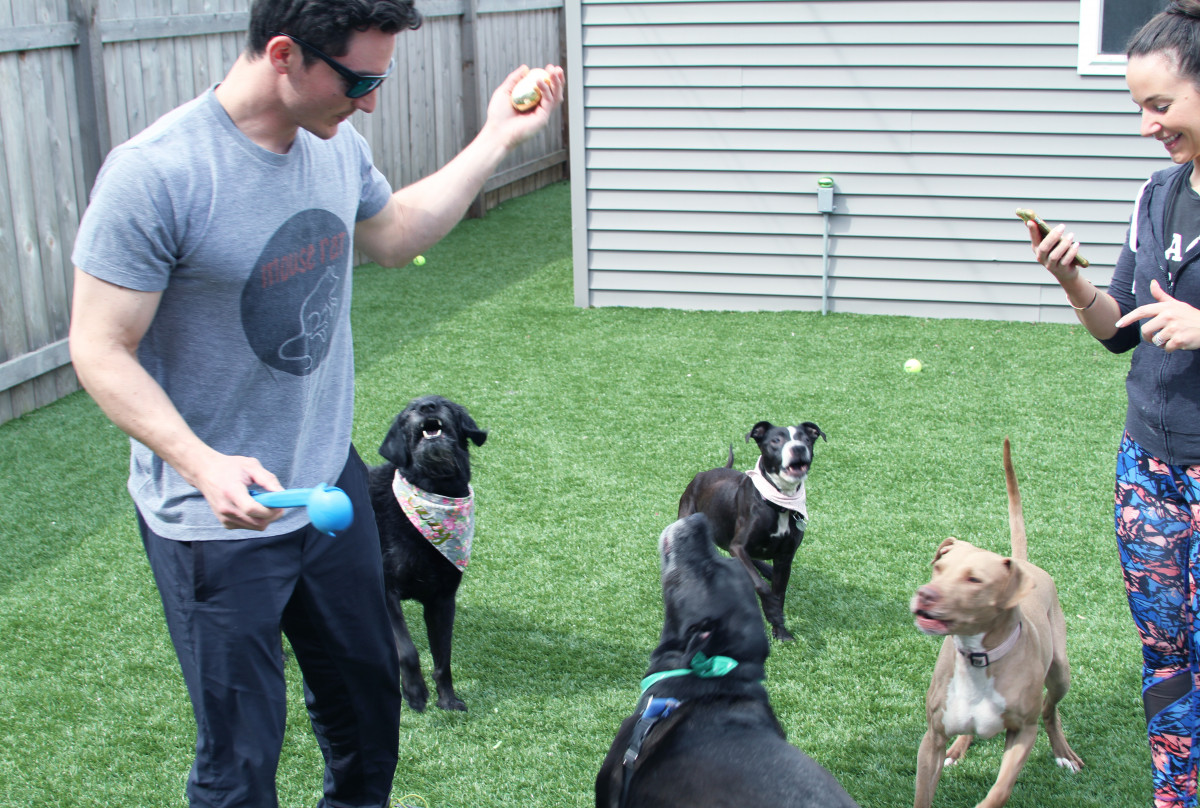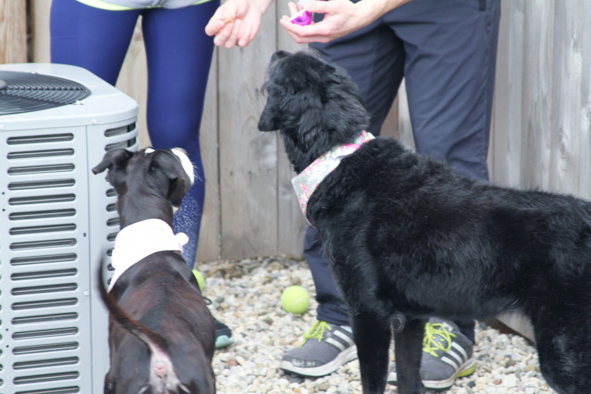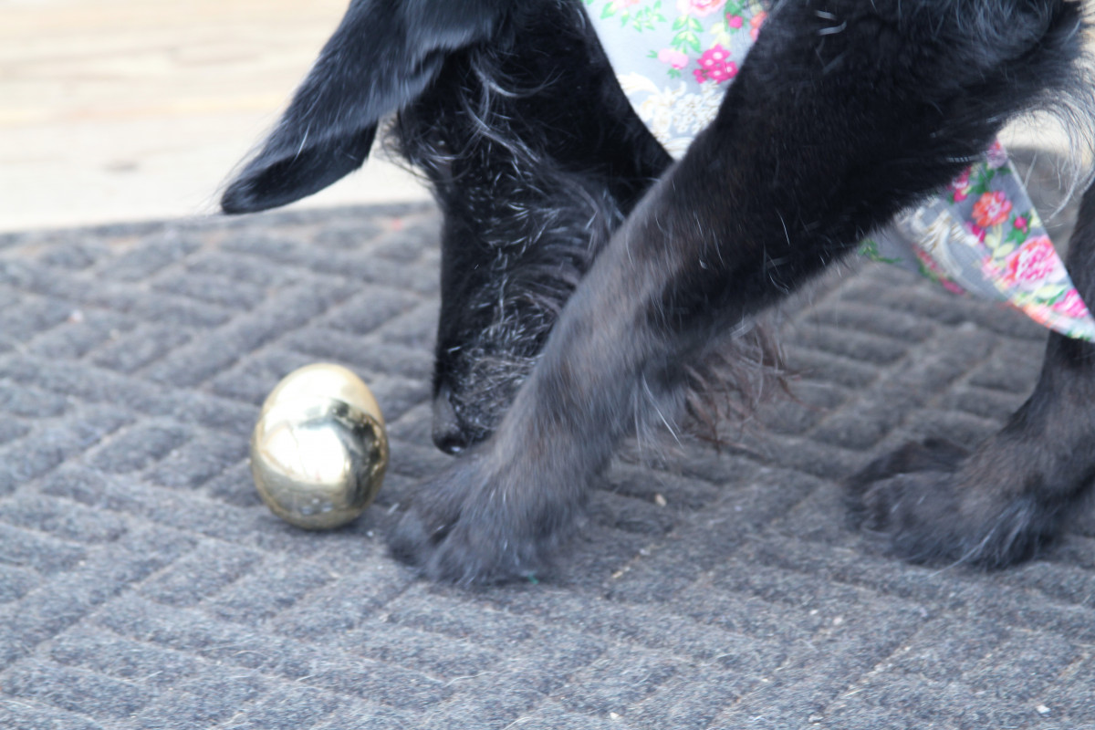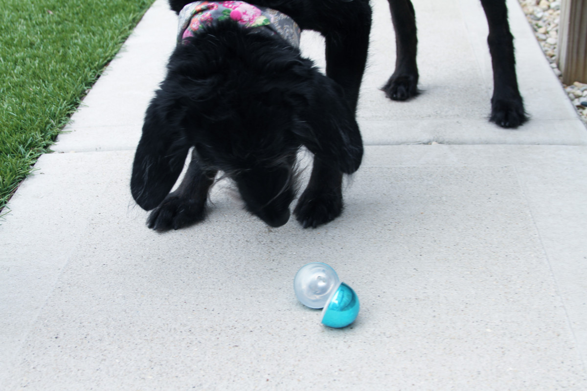 I was concerned about how the dogs would react to the eggs but with five adults watching five dogs I felt we could all handle the chaos. And truly, the eggs were large enough that none of them picked them up in their mouths. They just pawed at the eggs to open them and get the treat out! Like I mentioned, Izzy won and Hudson, Mylah and Addy got a few themselves. Ramona couldn’t have cared less and just wanted to play fetch, ha!