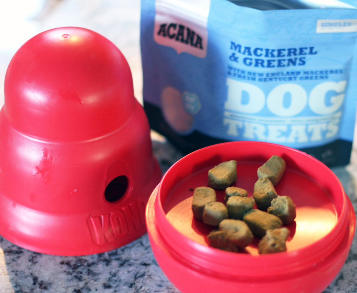 BRAIN TOYS! aka mental stimulation toys. These toys can be a lifesaver for a bored dog. One of our favorites is the KONG Wobbler (large). She was lucky enough to try it out thanks to our friends at Chewy.com. It’s really easy to use. I filled it up Acana Mackerel Green treats and it kept her busy for an hour. After that hour was the best part - she was mentally exhausted. She slept, and I got work done!