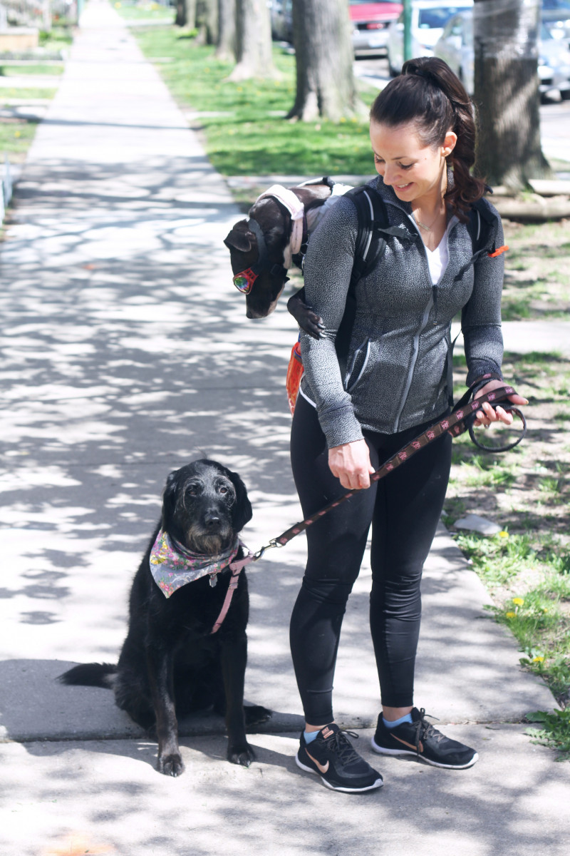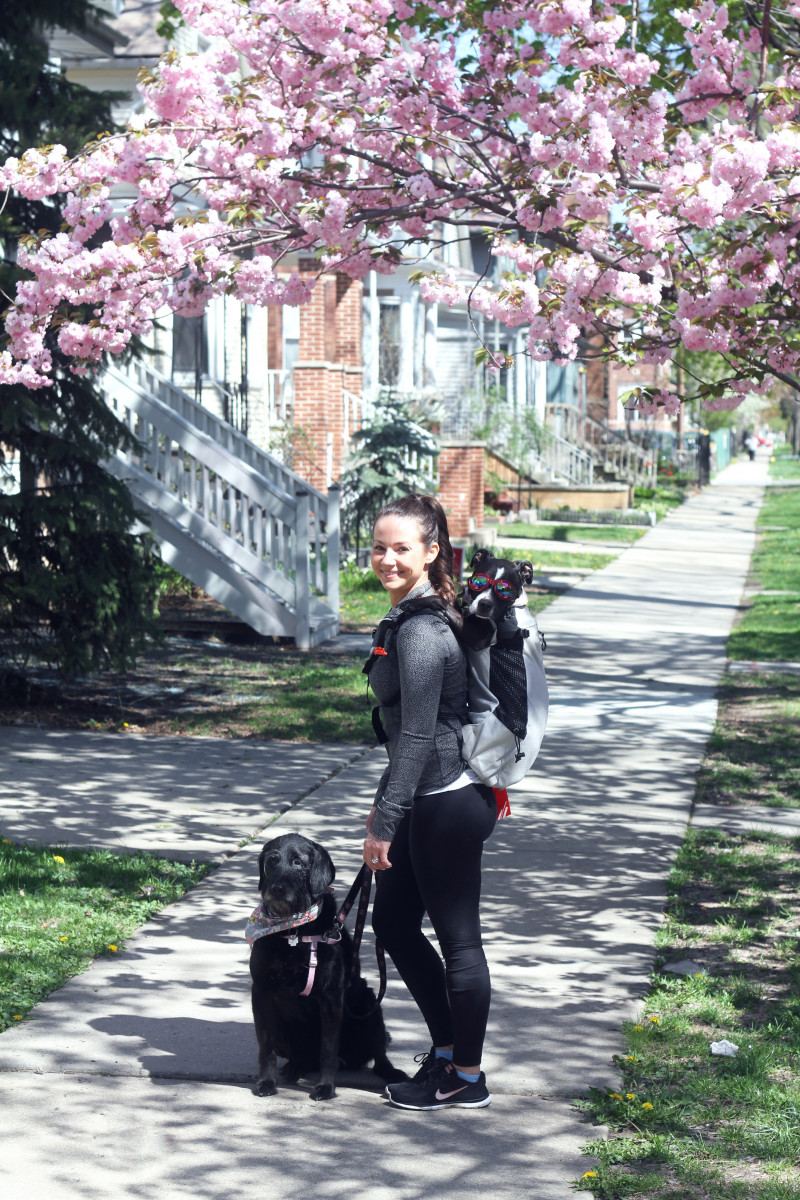I love that the K9 Sport Sack can also fit water bottles and attachments on it. I am pretty small, so I didn’t want to overload my back with much more than a 30lb dog, but it’s great to have the option. You can also wear the sport sack on the front to give your back a break too.