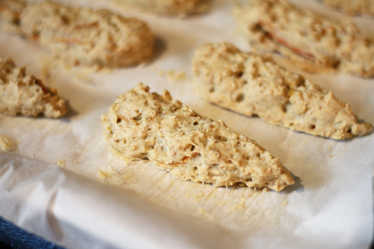 - Lay parchment paper down on a flat baking pan and take about a 1/2 cup worth of dough in your hands and shape them into a carrot shape on the parchment paper. The shape is pretty easy to freehand - rounded top going thinner to a point.