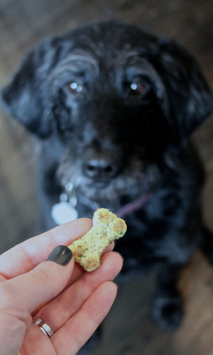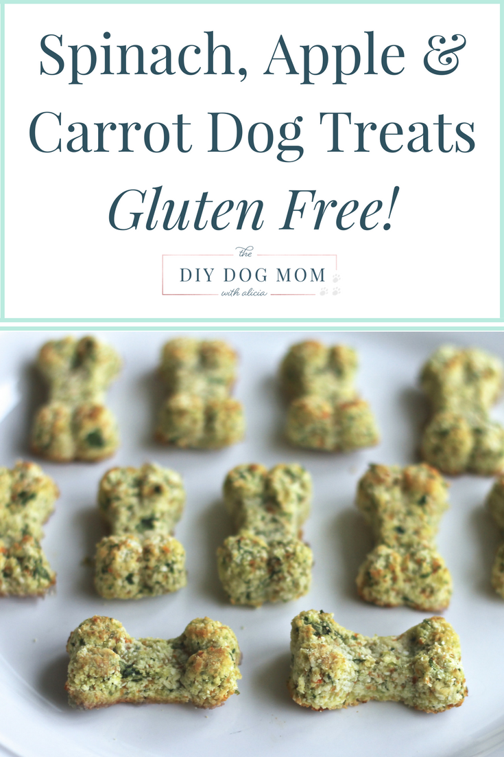 I love making grain free dog treats that have added healthy ingredients in them like spinach, carrots and apples! These homemade dog treats are very easy to make and completely grain and gluten free. Enjoy and let me know how your dog likes them!